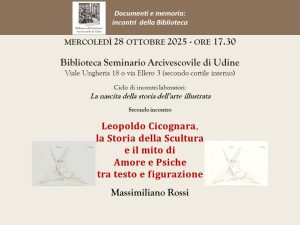 Ciclo di incontri-laboratori La nascita della storia dell’arte illustrata presso la Biblioteca del Seminario Arcivescovile di Udine, viale Ungheria 18 o via Ellero 3. Chiacchierando con storici dell’arte sulla nascita e sviluppo della storia dell’arte illustrata, gli utenti verranno coinvolti in modo partecipativo, visionando imprese editoriali ottocentesche corredate da ricchi apparati di incisioni, uniche e rare in Friuli.