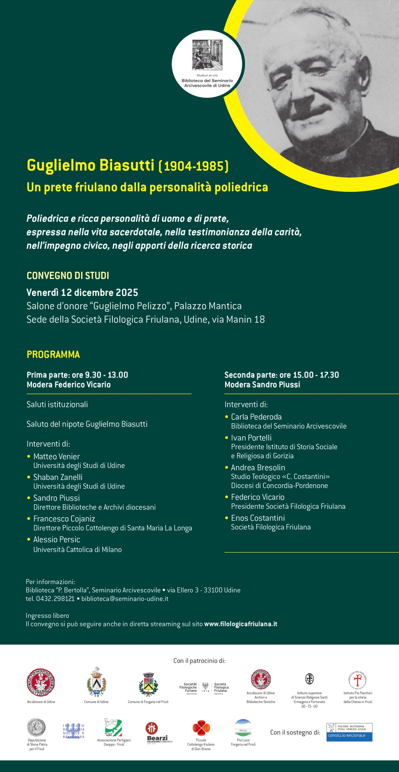 Mons. Sandro Piussi, direttore di Biblioteche e Archivi diocesani, delineerà il quadro delle vicende socio-politiche che caratterizzarono la diocesi dal ventennio fascista al secondo dopoguerra quando più intensa e incisiva fu l’azione di Biasutti.