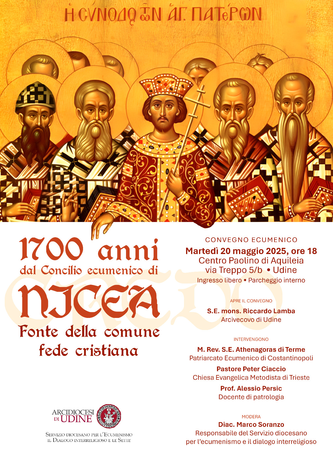 L’intervento dell’arcivescovo mons. Riccardo Lamba aprirà i lavori assembleari, che proseguiranno poi con l’alternanza di tre voci: S.E. Athenagoras di Terme, vescovo del Patriarcato Ecumenico di Costantinopoli; il pastore Peter Ciaccio della Chiesa Evangelica Metodista di Trieste e il prof. Alessio Persic, docente di patrologia allo Studio teologico interdiocesano e Istituto superiore di Scienze religiose di Gorizia, Udine e Trieste. A moderare l’incontro sarà il diacono Marco Soranzo, responsabile del Servizio per l’ecumenismo e il dialogo interreligioso dell’Arcidiocesi di Udine, realtà che promuove il convegno. La partecipazione è libera e gratuita.